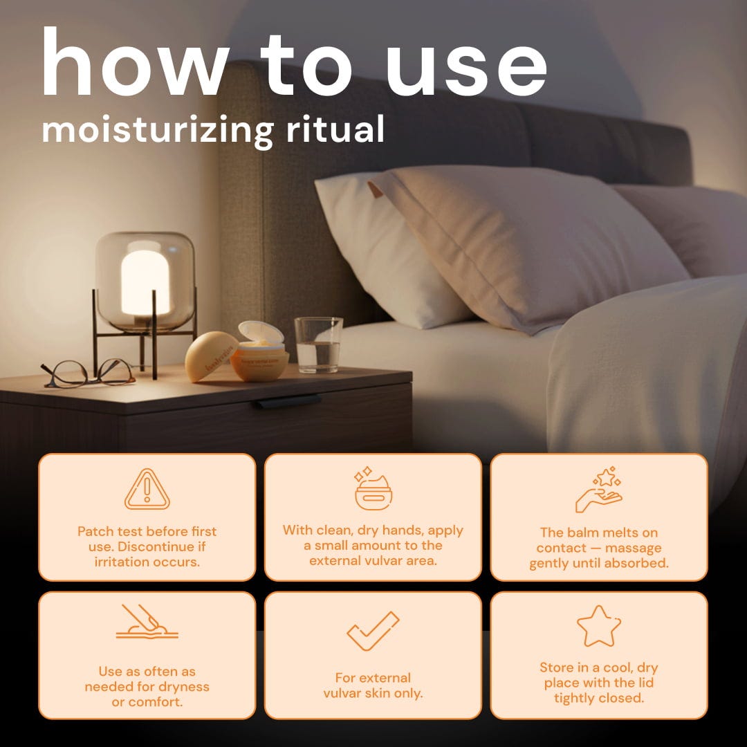 - Utilizar el bálsamo para la vulva en cualquier momento como parte de la rutina diaria de cuidado de la piel.