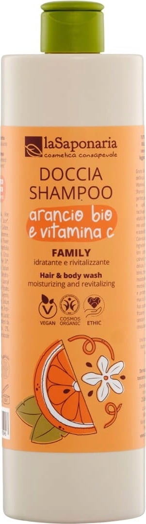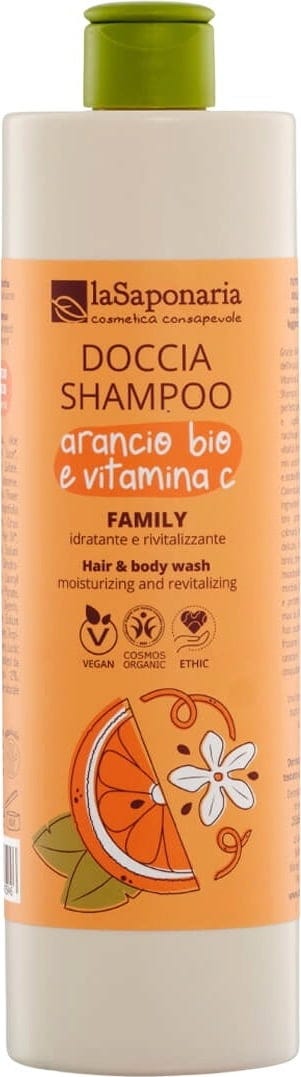 La Saponaria Champú y Gel de Ducha Family 2en1 Naranja Bio y Vitamina C, 500 ml