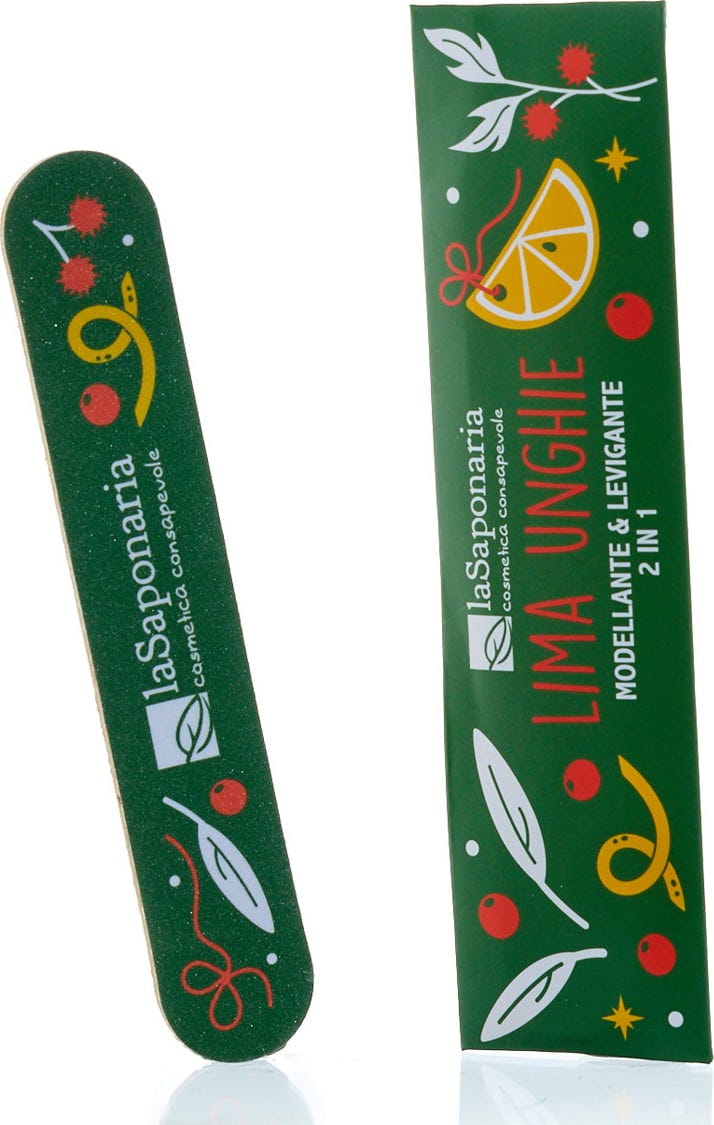 Esta bonita lima con diseño invernal es una práctica herramienta para el cuidado de las uñas. Cada lado tiene un grano diferente: una superficie de 180 para dar forma a las uñas y otra más fina de 240 para alisarlas. Tiene un núcleo de madera sostenible y es flexible. Gracias a su pequeño tamaño, se puede guardar en cualquier bolso.