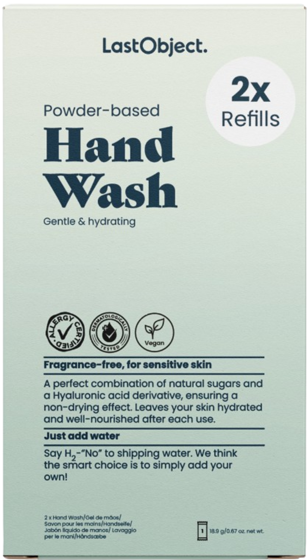 ¿Se ha acabado tu jabón líquido? ¡Ningún problema con estos recambios! Basta con mezclar el polvo con agua del grifo para crear nuevo jabón. Desarrollado en colaboración con la experta en belleza Salli Villefrance, este jabón es adecuado también para pieles sensibles, ya que no solo es suave, sino que además no contiene perfumes, sulfatos ni alérgenos.