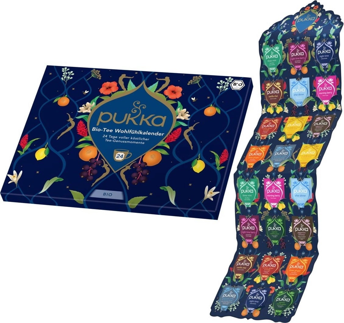 El Calendario del Bienestar PUKKA contiene mezclas de té de alta calidad que endulzarán cada momento de la época prenavideña y aportarán alegría y buen humor. Un bonito regalo para ti o para un ser querido.