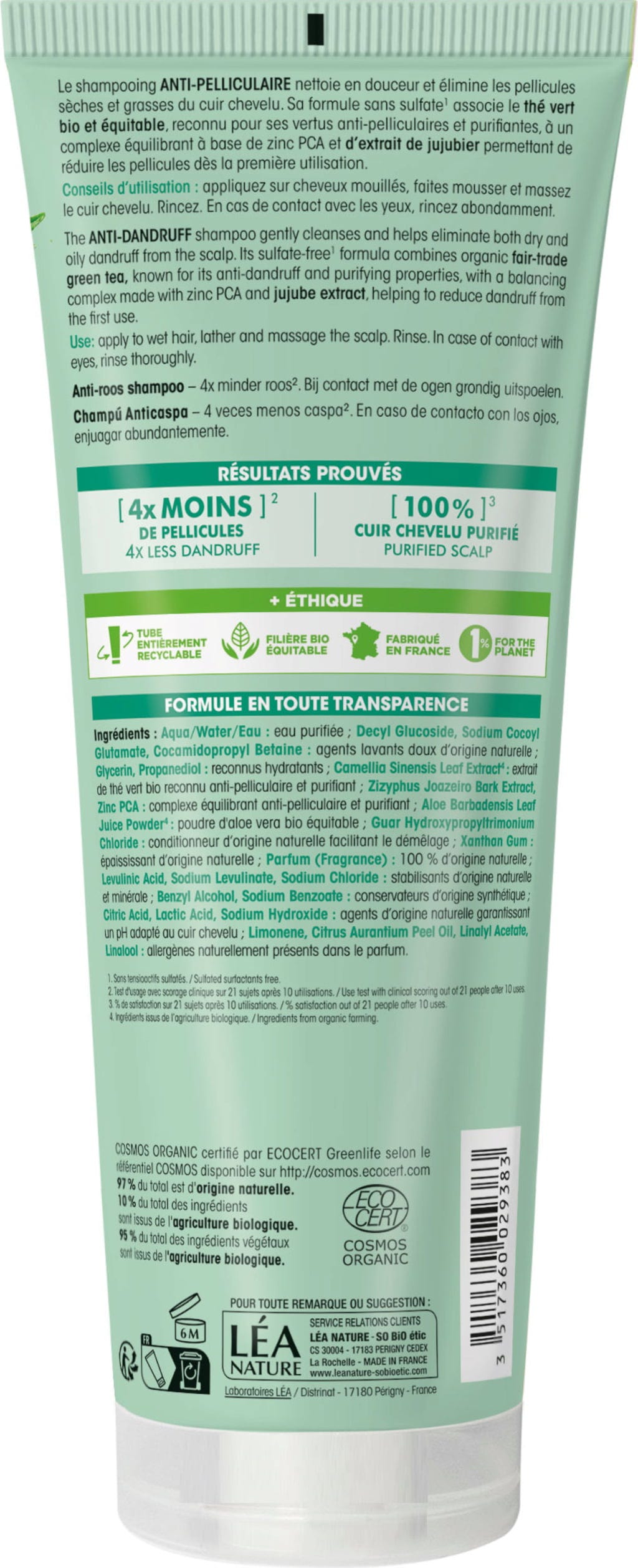 Gracias a los extractos de té verde, zinc PCA y extractos de azufaifo, este champú no sólo limpia la piel con suavidad, sino que también elimina la caspa seca y grasa. Su fórmula no contiene sulfatos ni otras sustancias limpiadoras agresivas y posee propiedades equilibrantes.