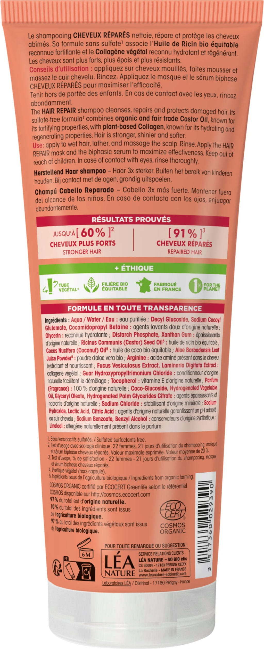 LÉA NATURE SO BiO étic Champú Reparador, 250 ml