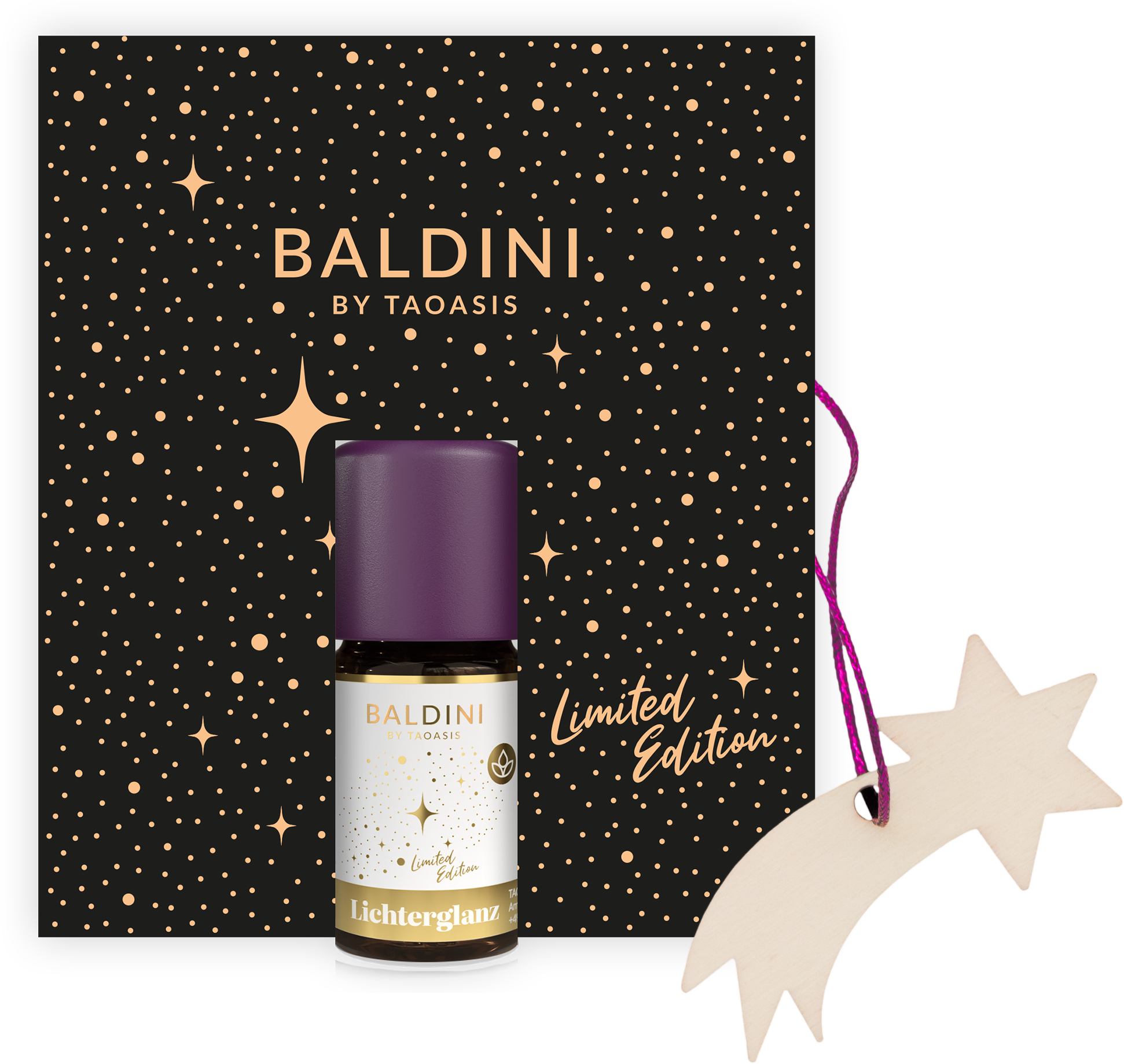 Este set de regalo contiene la Mezcla de Fragancias Glittering Lights y un colgante de madera. El aceite de fragancia combina bergamota, raíz de lirio y benjuí para crear una composición sensualmente cálida y festiva.